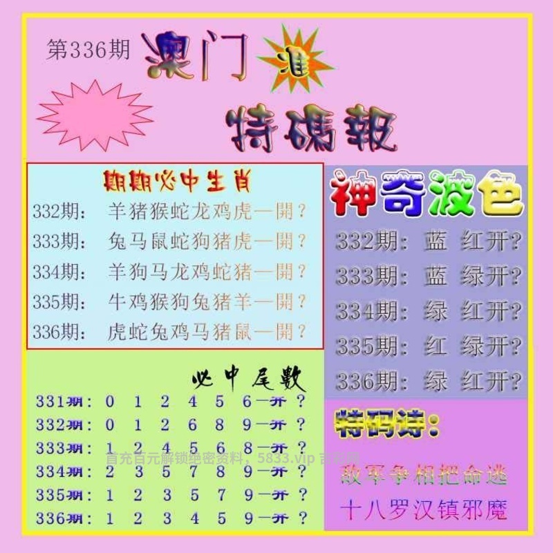 332期:七肖(羊蛇兔猴龙虎马)开:龙26准 |